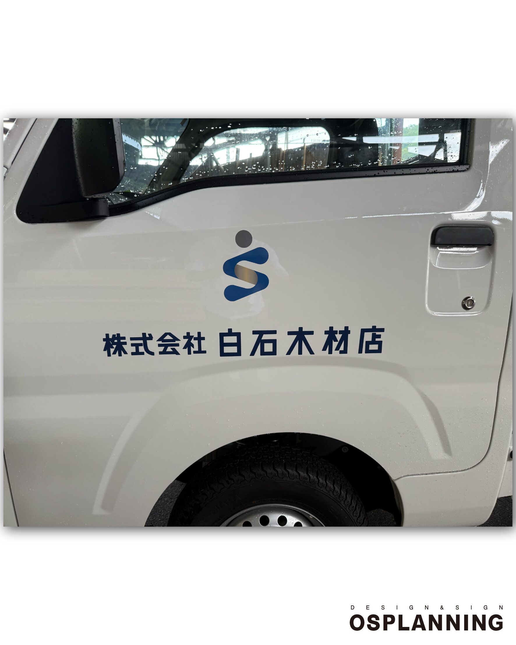 株式会社白石木材店様の車両マーキングを施工しました! 【運転席側】